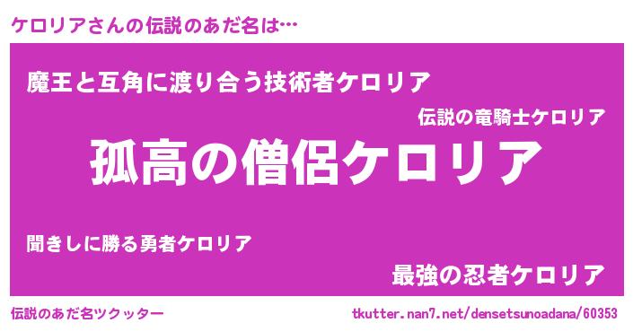 | 男性向けラノベタイトル風あだ名 | 『ダンジョンにケロリアを求めるのは間違っているだろうか』 |