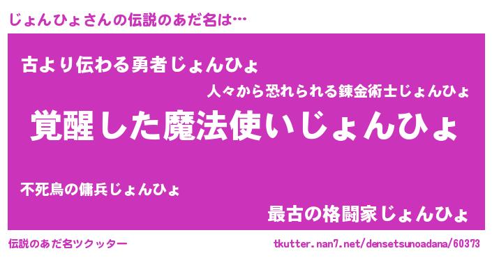 | 男性向けラノベタイトル風あだ名 | 『じょんひょの嫁は女の子じゃないと思った?』 |