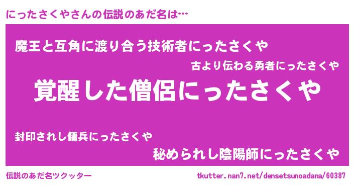 | 男性向けラノベタイトル風あだ名 | 『にったさくやの嫁は女の子じゃないと思った?』 |