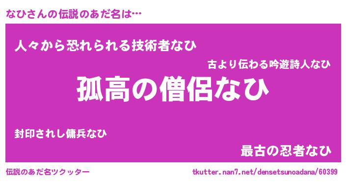 | ヒーロー風カッコイイあだ名 | 『暗黒騎士ナヒ』『友情の使者なひ』 |