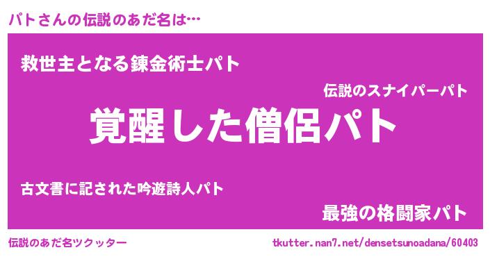 | 意味不明あだ名 | 『とにかく怪しいパト』『自称パト』 |