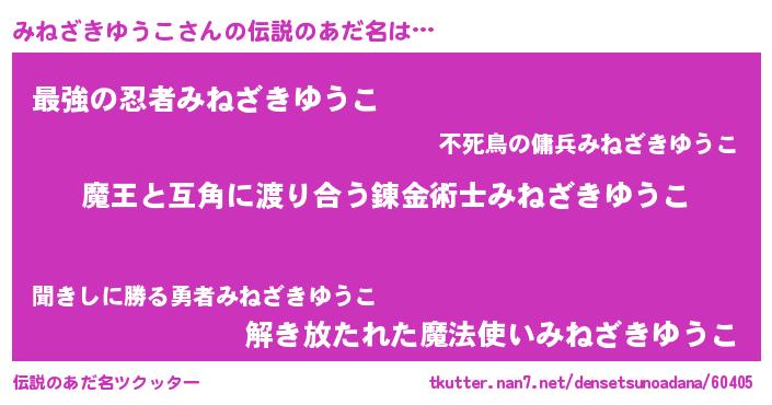 | ヒーロー風カッコイイあだ名 | 『愛の使者みねざきゆうこ』 |