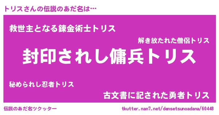 | 意味不明あだ名 | 『住所不定無職トリス(59歳)』 |