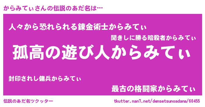 | 胡散臭い通販商品みたいなあだ名 | 『ガンによく効く冬虫夏草…その名も「からみてぃ」』 |