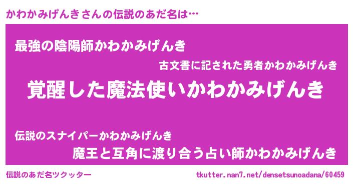 | 意味不明あだ名 | 『自称かわかみげんき』 |
