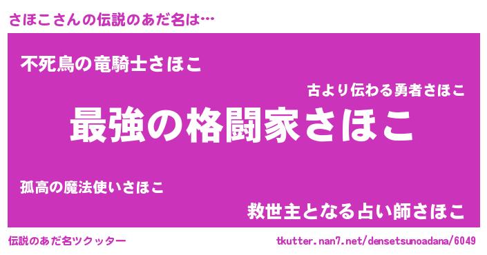 | 意味不明あだ名 | 『自称さほこ』『住所不定無職さほこ(3歳)』 |