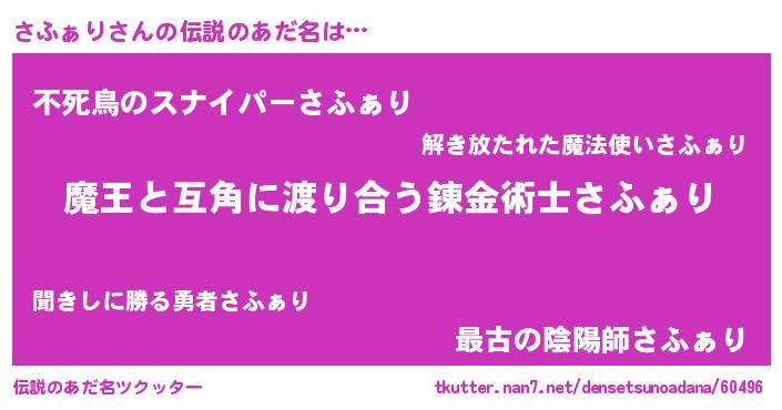 | 女子向けラノベタイトル風あだ名 | 『さふぁり恋絵巻』 |