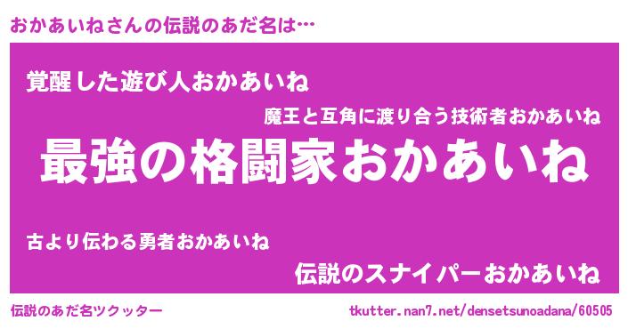 | 欧米人風あだ名 | 『おかあいねクリステル』 |