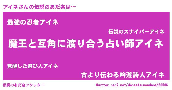 | ヒーロー風カッコイイあだ名 | 『慈愛の使者アイネ』『仮面アイダー』 |