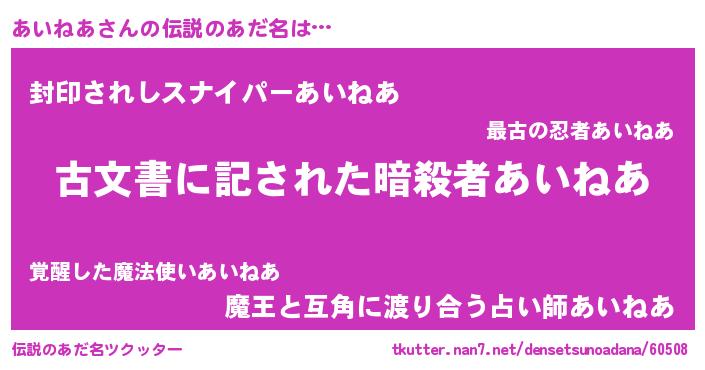 | ヘコむあだ名 | 『あいねあ(笑)』『あいにー』 |