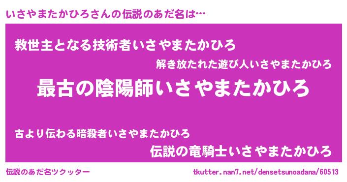 | 肩書あだ名 | 『いさやまたかひろ上級大将』 |