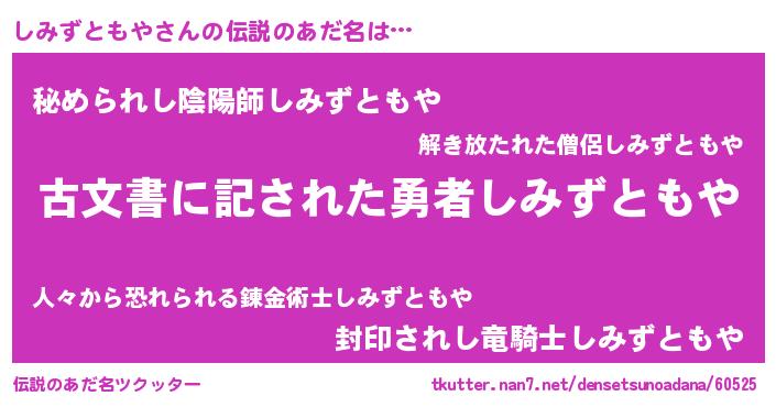 | 意味不明あだ名 | 『永久保存しみずともや』 |