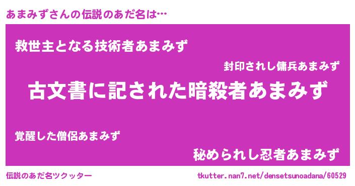 | 意味不明あだ名 | 『永久保存あまみず』『自称あまみず』 |