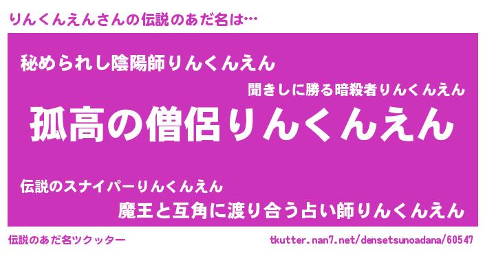 | 意味不明あだ名 | 『住所不定無職りんくんえん(47歳)』 |