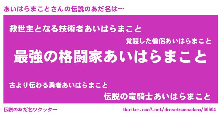 | ファンタジー風あだ名 | 『エターナルアイハラマコトー』 |