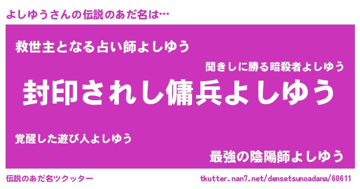 | 男性向けラノベタイトル風あだ名 | 『ヨシユウアートオンライン』 |