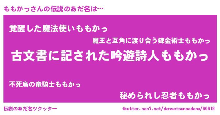 | ヒーロー風カッコイイあだ名 | 『ネオモモカッ』『銀牙騎士モモ』 |