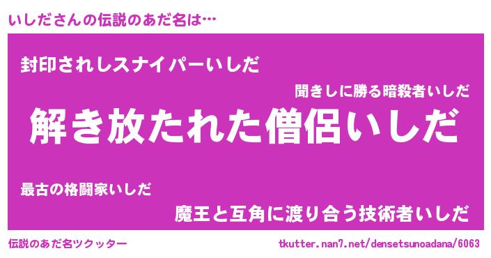 | 男性向けラノベタイトル風あだ名 | 『ダンジョンにいしだを求めるのは間違っているだろうか』 |