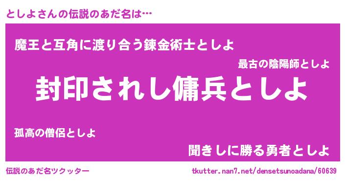 | ヒーロー風カッコイイあだ名 | 『スーパートシヨ』『愛の使者としよ』 |