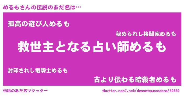 | ヒーロー風カッコイイあだ名 | 『最強戦士メルモ』『友情の使者めるも』 |