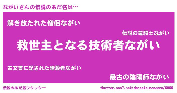 | 女子向けラノベタイトル風あだ名 | 『死神ながいの再婚』『闇のながい』 |