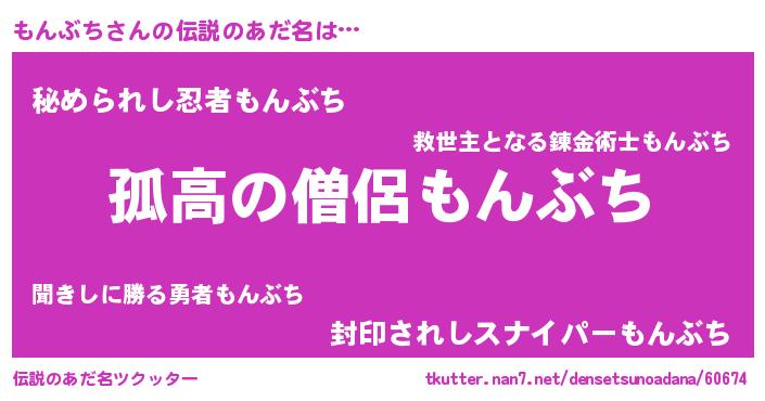 | 意味不明あだ名 | 『住所不定無職もんぶち(41歳)』 |