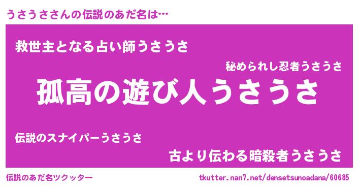 | ヒーロー風カッコイイあだ名 | 『ウルトラ戦士ウサウサ』『天弓騎士ウサ』 |