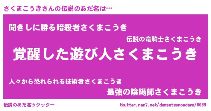 | ヒーロー風カッコイイあだ名 | 『天弓騎士サク』『ネオサクマコウキ』 |