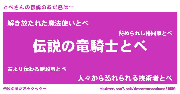 | ヒーロー風カッコイイあだ名 | 『スーパートベ』『幻影騎士トベ』 |