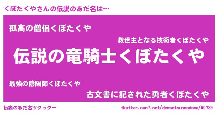 | ヒーロー風カッコイイあだ名 | 『スーパークボタクヤ』『銀牙騎士クボ』 |