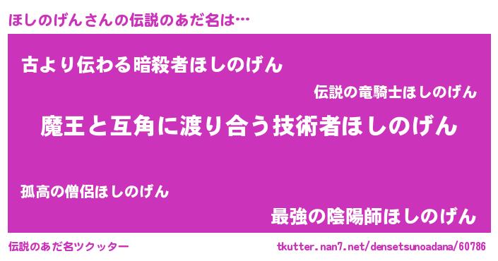 | 女子向けラノベタイトル風あだ名 | 『ほしのげん恋絵巻』 |
