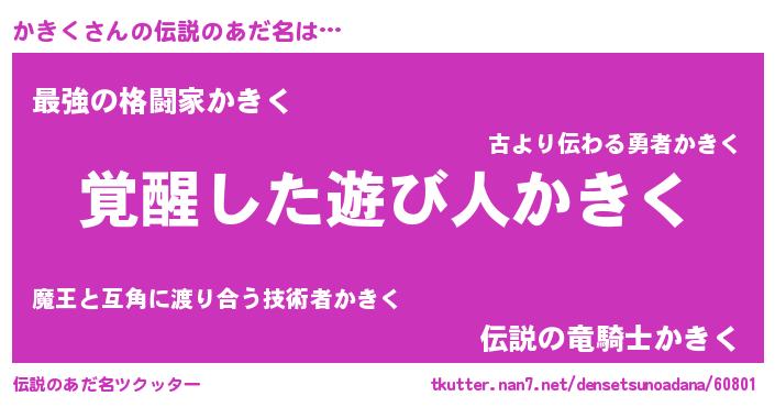 | 意味不明あだ名 | 『住所不定無職かきく(89歳)』 |