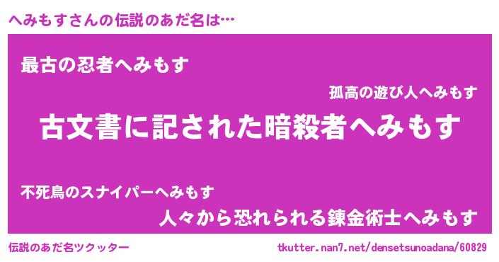 | ヒーロー風カッコイイあだ名 | 『ネオヘミモス』『ウルトラへみもすマン』 |