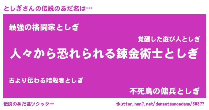 | ヒーロー風カッコイイあだ名 | 『正義の使者としぎ』『スーパートシギ』 |