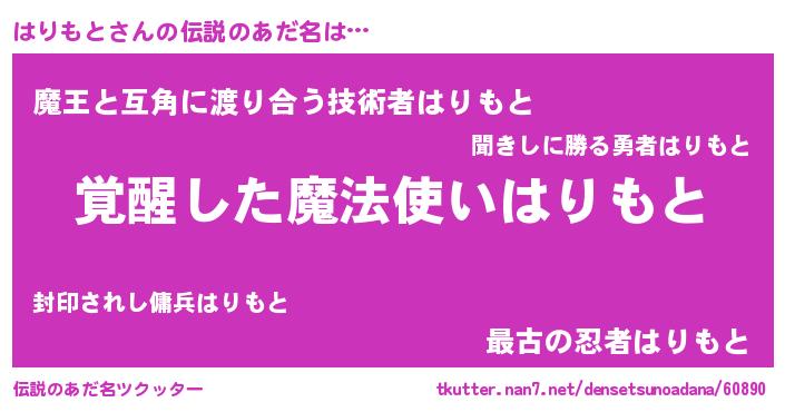 | 意味不明あだ名 | 『住所不定無職はりもと(7歳)』 |