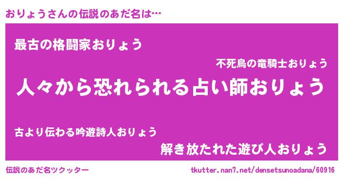 | 意味不明あだ名 | 『自称おりょう』『おりょうフォーエバー』 |