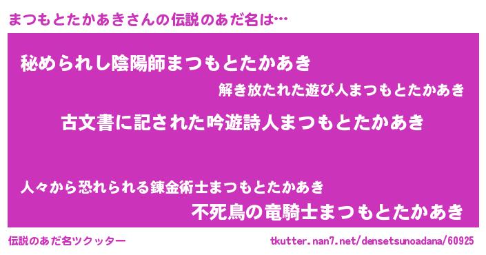 | 意味不明あだ名 | 『住所不定無職まつもとたかあき(5歳)』 |