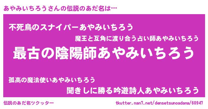 | ヒーロー風カッコイイあだ名 | 『ウルトラあやみいちろうマン』 |