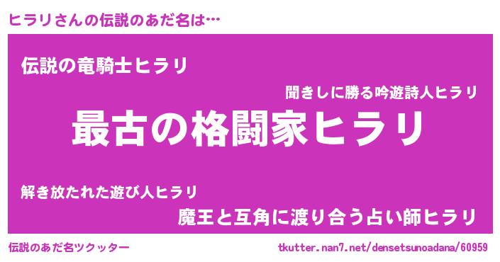| ファンタジー風あだ名 | 『エターナルヒラリー』『ヒラフェル』 |
