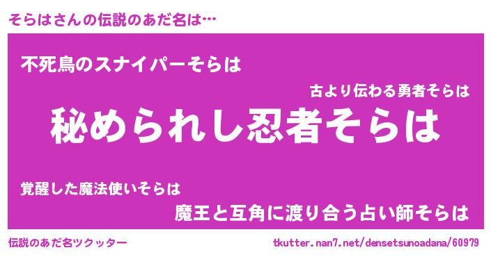 | ヒーロー風カッコイイあだ名 | 『仮面ソラダー』『ウルトラそらはマン』 |