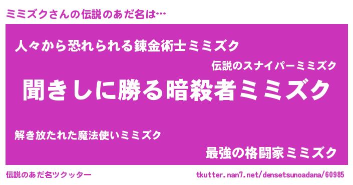 | 女子向けラノベタイトル風あだ名 | 『ミミズクアンティーク』 |