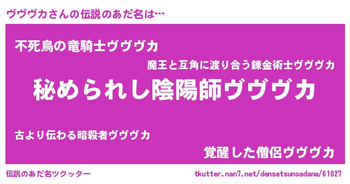 | ヒーロー風カッコイイあだ名 | 『ウルトラヴヴヴカマン』『黄金騎士ヴヴ』 |