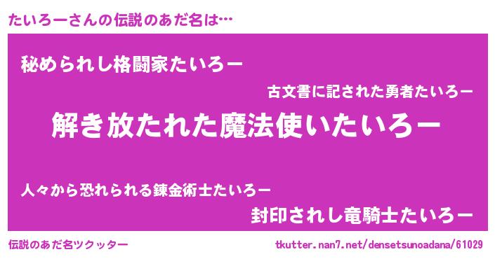 | ヒーロー風カッコイイあだ名 | 『サイバー戦士タイロー』『暗黒騎士タイ』 |