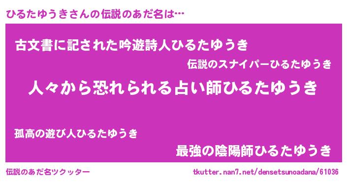 | ヒーロー風カッコイイあだ名 | 『正義の使者ひるたゆうき』 |
