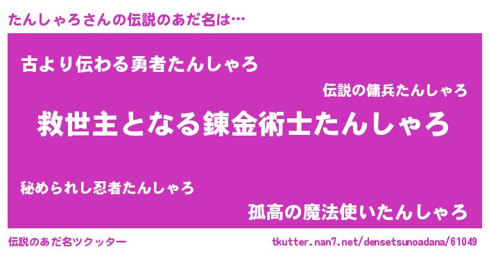 | ヘコむあだ名 | 『たんしゃろ(震え声)』『たんぷりん』 |