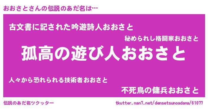 | ヒーロー風カッコイイあだ名 | 『暗黒騎士オオ』『ネオオオサト』 |