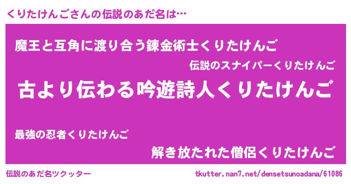 | 意味不明あだ名 | 『自称くりたけんご』 |