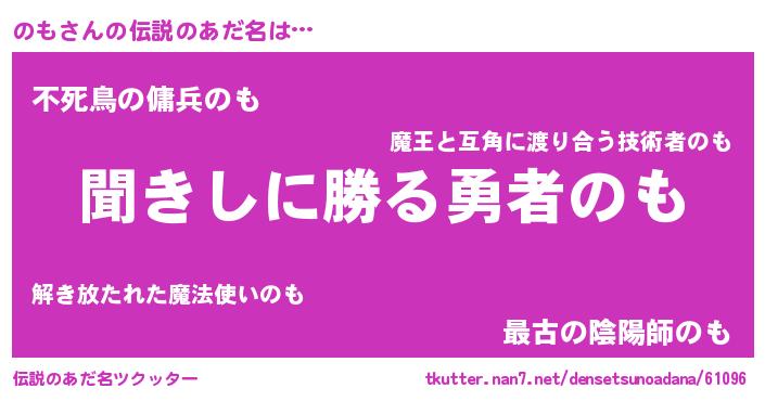 | 胡散臭い通販商品みたいなあだ名 | 『絶対に幸福をもたらす水素水…その名も「のも」』 |