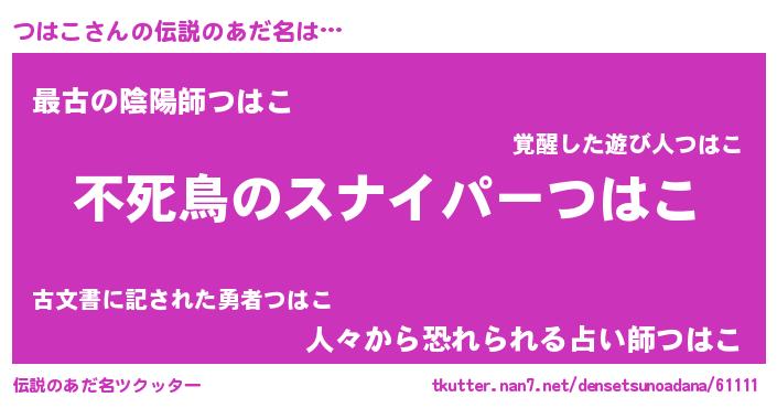 | ヒーロー風カッコイイあだ名 | 『スーパーツハコ』『ウルトラつはこマン』 |