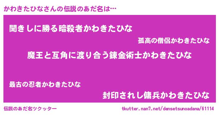 | 女子向けラノベタイトル風あだ名 | 『かわきたひな恋絵巻』 |